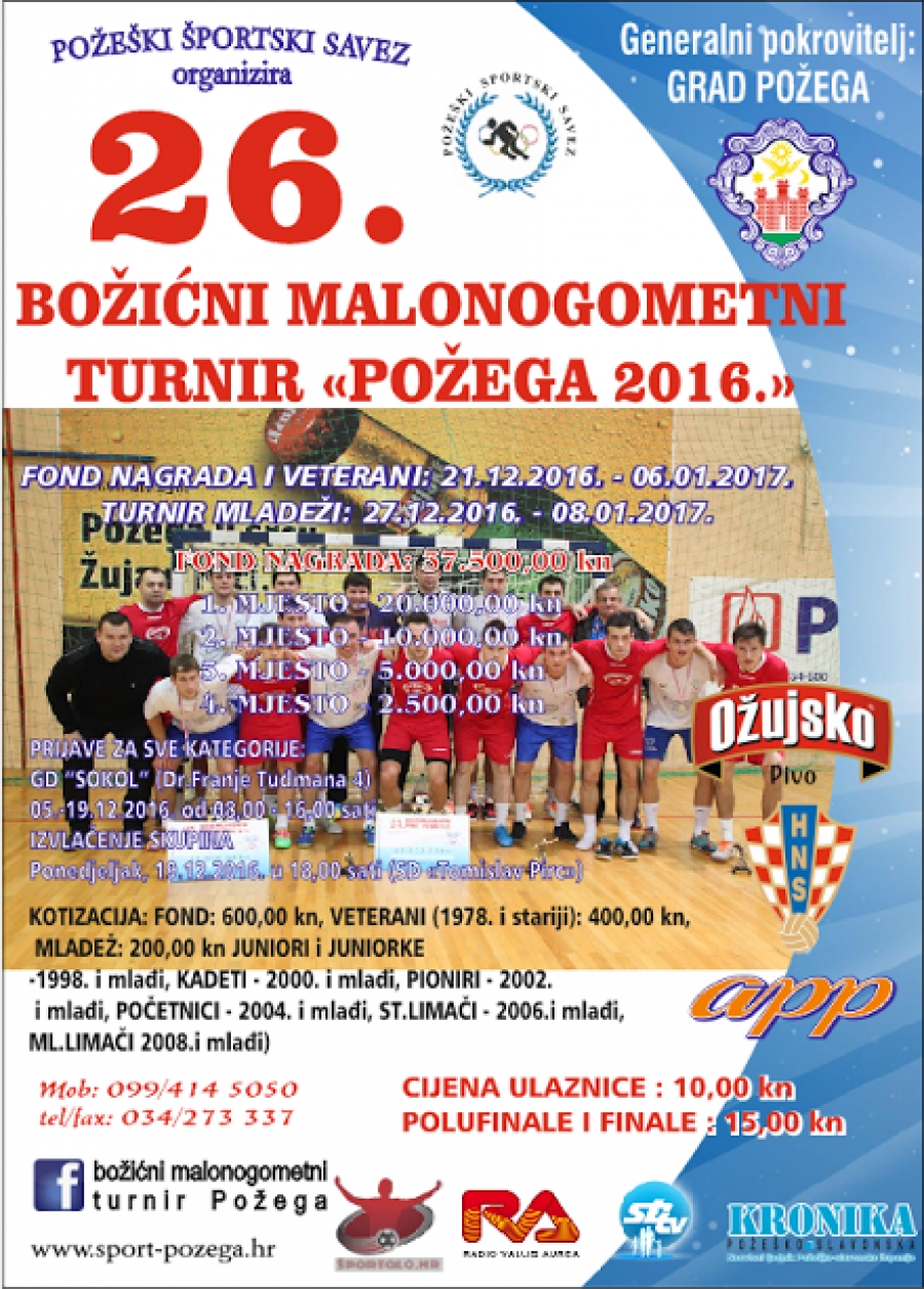 Propozicije 26. Božićnog malonogometnog turnira "Požega 2016"