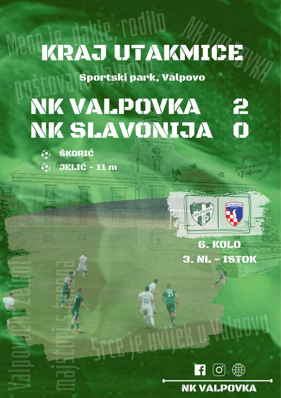 Slavonija poražena na gostovanju kod Valpovke u 6. kolu 3. Nogometne lige - Istok