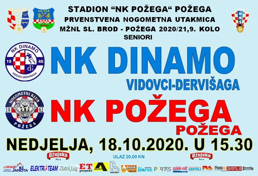 U 9. kolu MŽNL Dinamo domaćin Požegi u nedjelju, 18. listopada u 15,30 sati na svom igralištu u Vidovcima