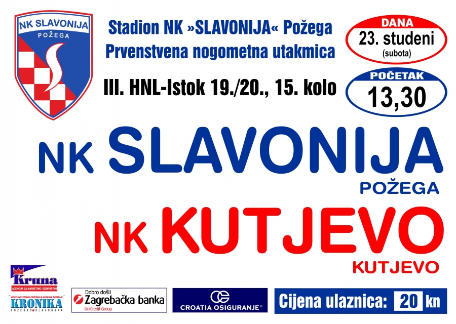 Nogometaši Slavonije u subotu, 23. studenog s početkom u 13,30 sati dočekuju NK Kutjevo u županijskom derbiju 15. kola 3. HNL - Istok