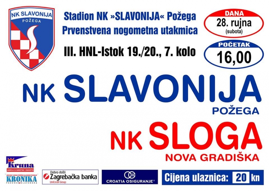 Slavonija u subotu, 28. rujna s početkom u 16,00 sati dočekuje NK Slogu (Nova Gradiška) u 7. kolu 3. HNL - Istok