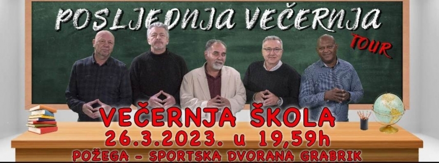 Kultna „Večernja škola“ Željka Pervana u nedjelju, 26. ožujka s početkom u 19,59 sati u Sportskoj dvorani Tomislav Pirc