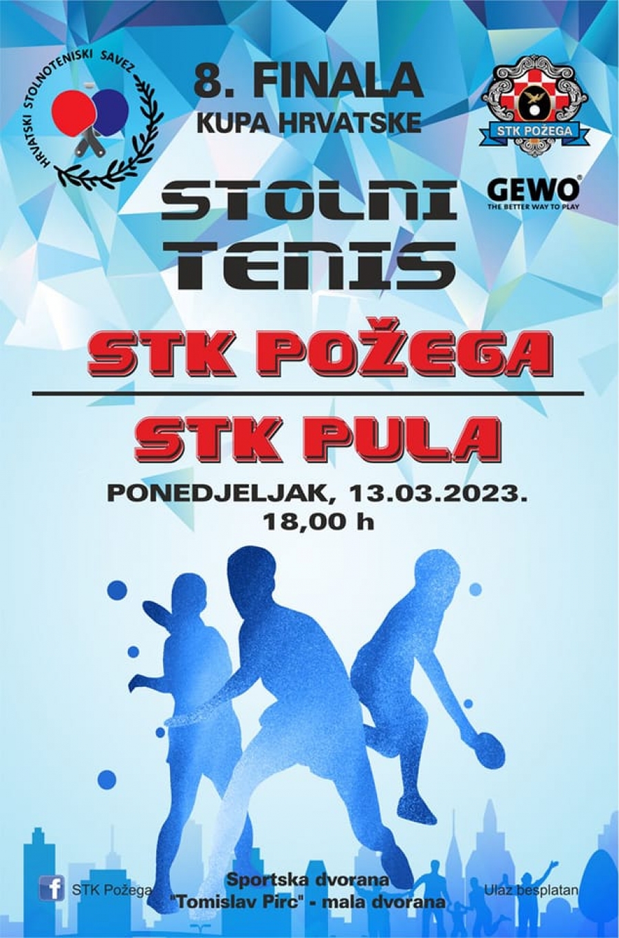 Stolnotenisači Požege u ponedjeljak, 13. ožujka igraju 1/8 finalu Kupa Hrvatske protiv STK Pula