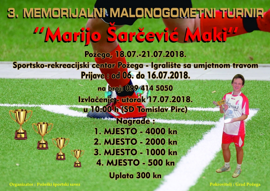 Prijave za 3. Memorijalni malonogometni turnir "Marijo Šarčević - Maki" primaju se do 16. 07. 2018.