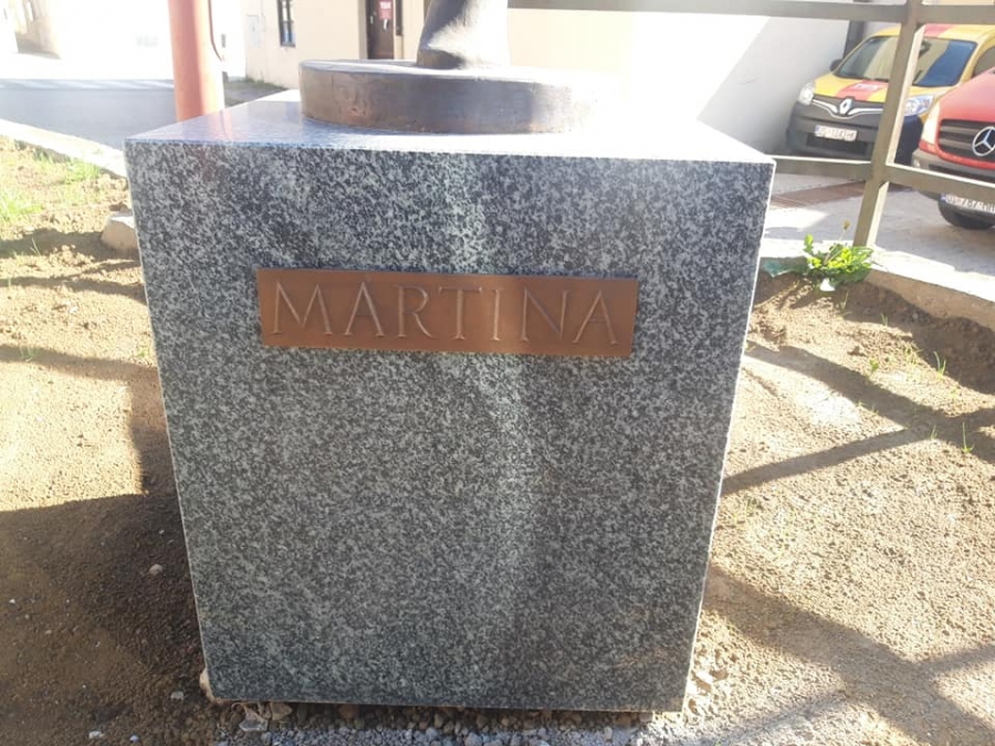 Na skulpturu rukometašice postavljen je natpis Martina